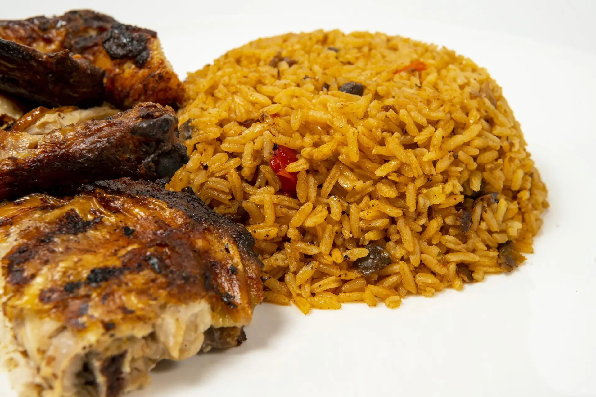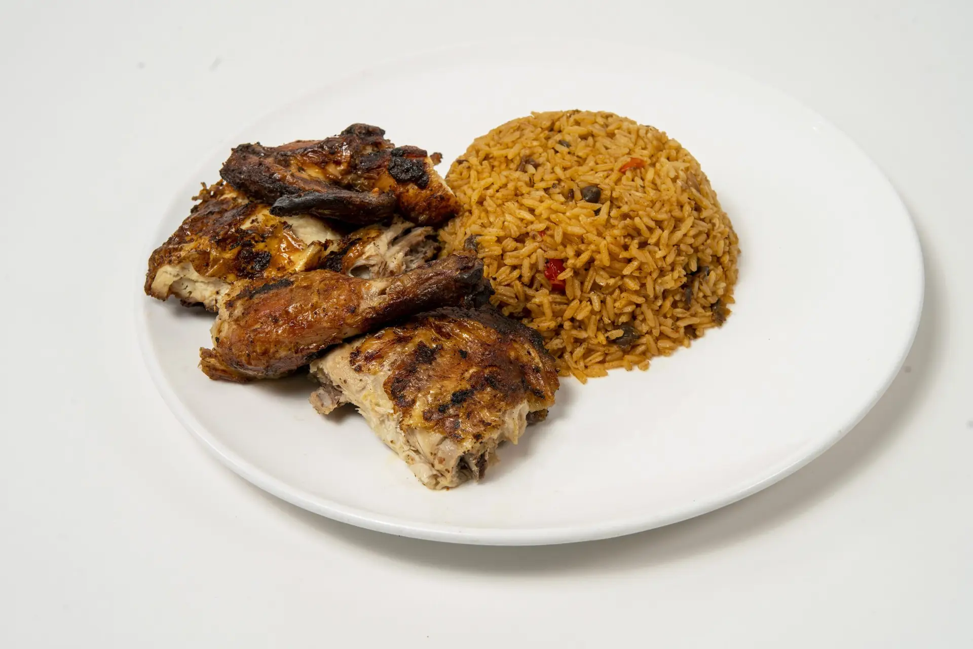 Marinated and flame-grilled to perfection, served with your choice of two sides: white rice, yellow rice, black beans, red beans, or sweet plantains.
